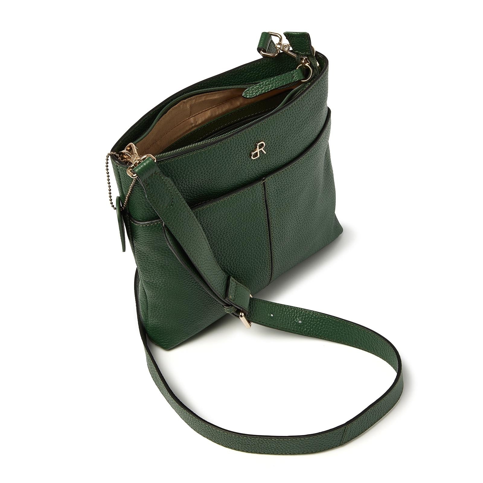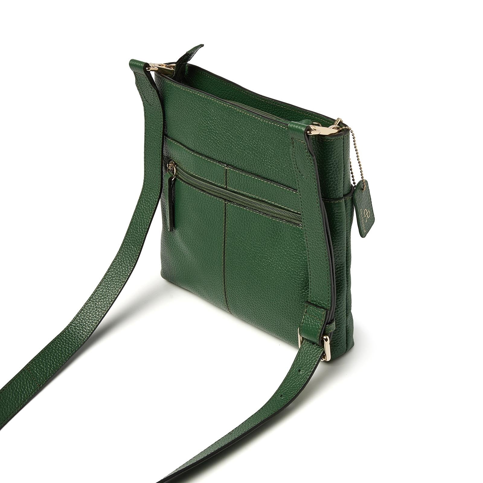 Das Hauptfach lässt sich mit einem Reißverschluss sicher verschließen und bietet Platz für ein zusätzliches Reißverschlussfach, ein Telefonfach und einen praktischen Schlüsselring. Sowohl auf der Vorder- als auch auf der Rückseite befindet sich eine Reißverschlusstasche, ideal für Gegenstände, die Sie schnell zur Hand haben möchten. Der abnehmbare und verstellbare Schultergurt sorgt dafür, dass Sie die Tasche ganz nach Belieben tragen können.