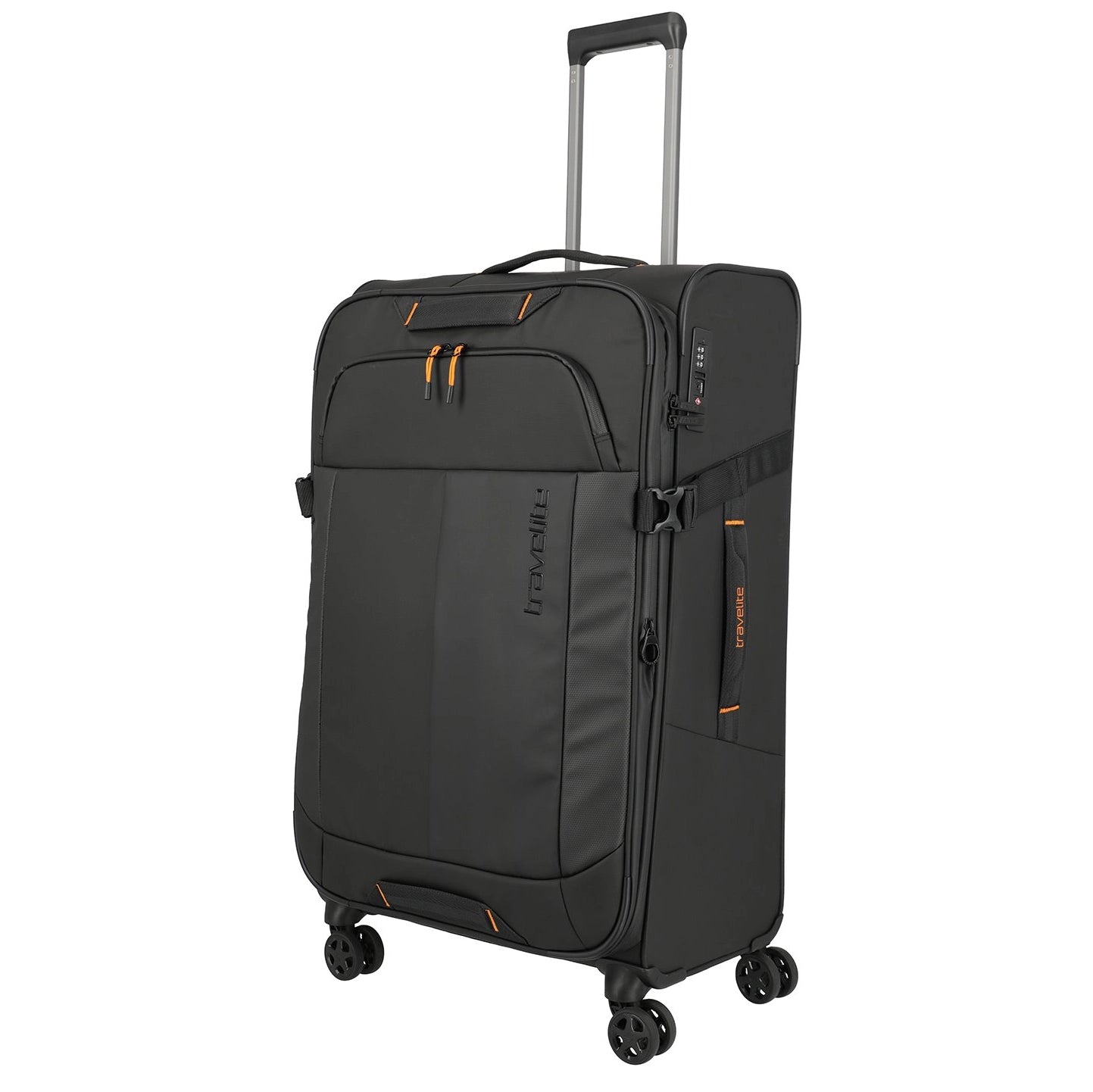 Das Air Base Spinner 55 Handgepäck Super Light von Travelite verfügt über vier leichtgängige Doppelrollen. Zusätzlich verfügt er über eine ausziehbare Zugstange und Tragegriffe, sodass sich der Koffer besonders bequem transportieren lässt. Im Inneren befinden sich zwei große verschließbare Fächer mit gekreuzten Packgurten und 2 zusätzliche Reißverschlusstaschen.