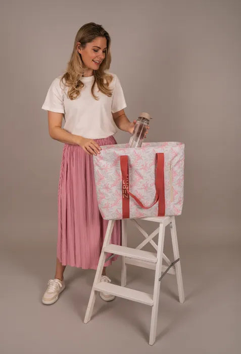 Die Tasche besteht aus zwei Hauptfächern mit jeweils eigener Funktion. Das isolierte Kühlfach hält Getränke und Snacks schön frisch, während das Nassfach perfekt für feuchte Handtücher oder Badebekleidung geeignet ist. Außerdem finden Sie vorne und hinten zwei Reißverschlusstaschen, praktisch für Gegenstände, die Sie schnell zur Hand haben möchten.